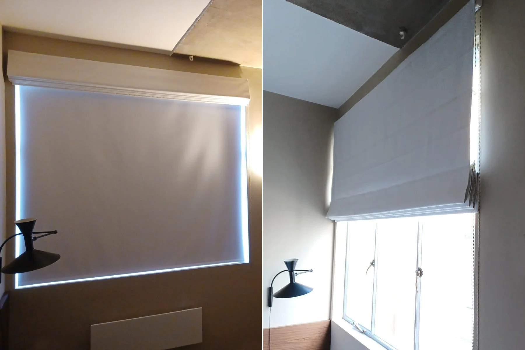 Roller blinds custom-made and installed by Opal Curtains, London.